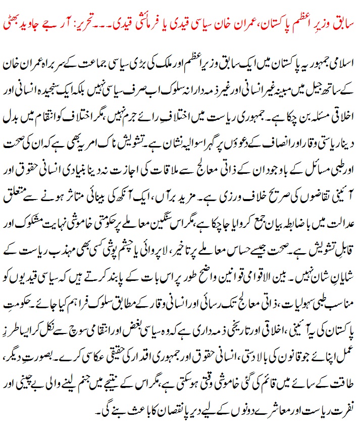 سابق وزیرِ اعظم پاکستان، عمران خان سیاسی قیدی یا فرمائشی قیدی ۔۔۔ تحریر : آر جے جاوید بھٹی Dr.Ghulam Murtaza فروری 15, 2026 Home, آرٹیکل, اسلام آباد, اہم خبریں, بین الاقوامی, پاکستان, پشاور, پنجاب, جرائم و حادثات, سندھ, سیاست, صحت, صفحہ اول, فخر پاکستان, فیصل آباد, قومی خبریں, کراچی, کشیمر, لاہور Leave a comment 16 Views Share Facebook Twitter Google + LinkedIn Pinterest