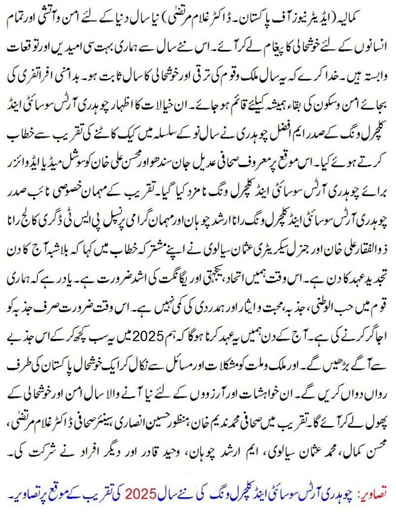 کمالیہ : چوہدری آرٹس سوسائٹی اینڈ کلچرل ونگ کمالیہ کے زیر اہتمام سال نو کی تقریب کا انعقاد