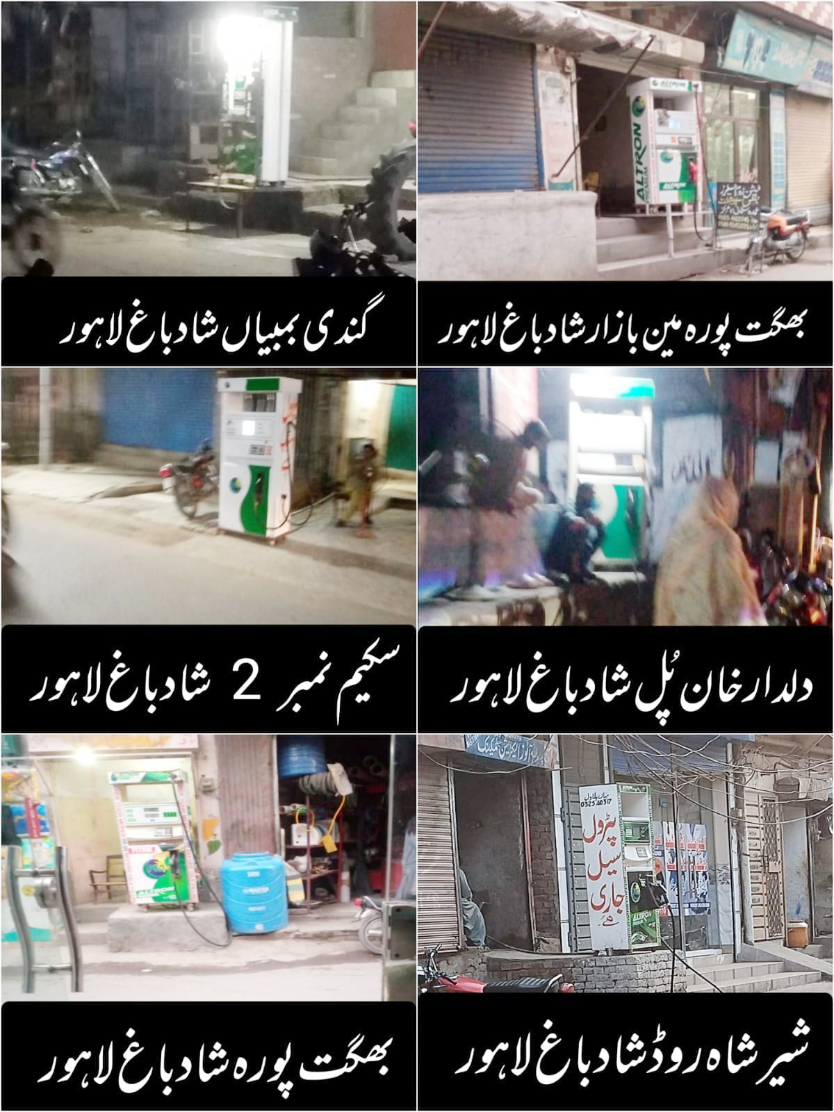 لاہور (کرائم رپورٹر) تفصیلات کے مطابق لاہور شادباغ کے علاقہ اکرم پارک نزد تھانہ شادباغ، سکیم نمبر 2، دلدار خان پُل، ندیمی چوک، شیر شاہ روڈ، بھگت پورہ، گندی بمبیاں سمیت دیگر مقامات پر غیر قانونی منی پٹرول پمپ مشینیں نصب ہیں، جوکہ کسی بھی وقت کسی بڑے حادثہ کا سبب بن سکتی ہیں، غیر قانونی منی پٹرول پمپ مشینوں کی وجہ سے ہزاروں انسانی زندگیاں خطرے میں ہیں، ذرائع نے انکشاف کیا کہ غیر قانونی منی پٹرول پمپ مشینوں کے مالکان سے تھانہ شادباغ پولیس بھاری بھرکم منتھلیاں وصول کررہی ہے، تمام غیر قانونی پٹرول پمپ مشینیں تھانہ شادباغ پولیس کی پشت پناہی میں چل رہی ہیں، علاقہ مکینوں کی وزیر اعلیٰ پنجاب اور آئی جی پنجاب سے نوٹس لینے کی اپیل ہے
